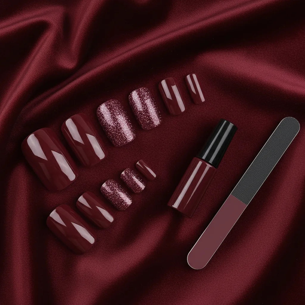 Get ready to ditch the salon fuss and embrace flawless nails in minutes. We're here to spill all the secrets on how our burgundy beauties will transform your look and free up your precious time.
