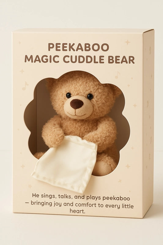 Meet your baby’s new best friend! Our Magic Cuddle Bear talks, sings, and plays peekaboo with its silky satin blanket — bringing laughter, comfort, and gentle joy to every moment. 💕