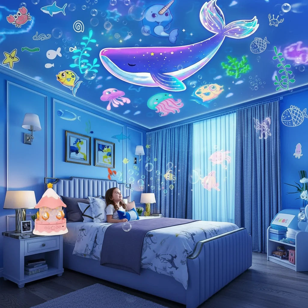 Prepare for a breathtaking journey! This magical device paints your room with a shimmering stardust galaxy or a serene, whimsical ocean, bringing boundless imagination right to your walls and ceiling.